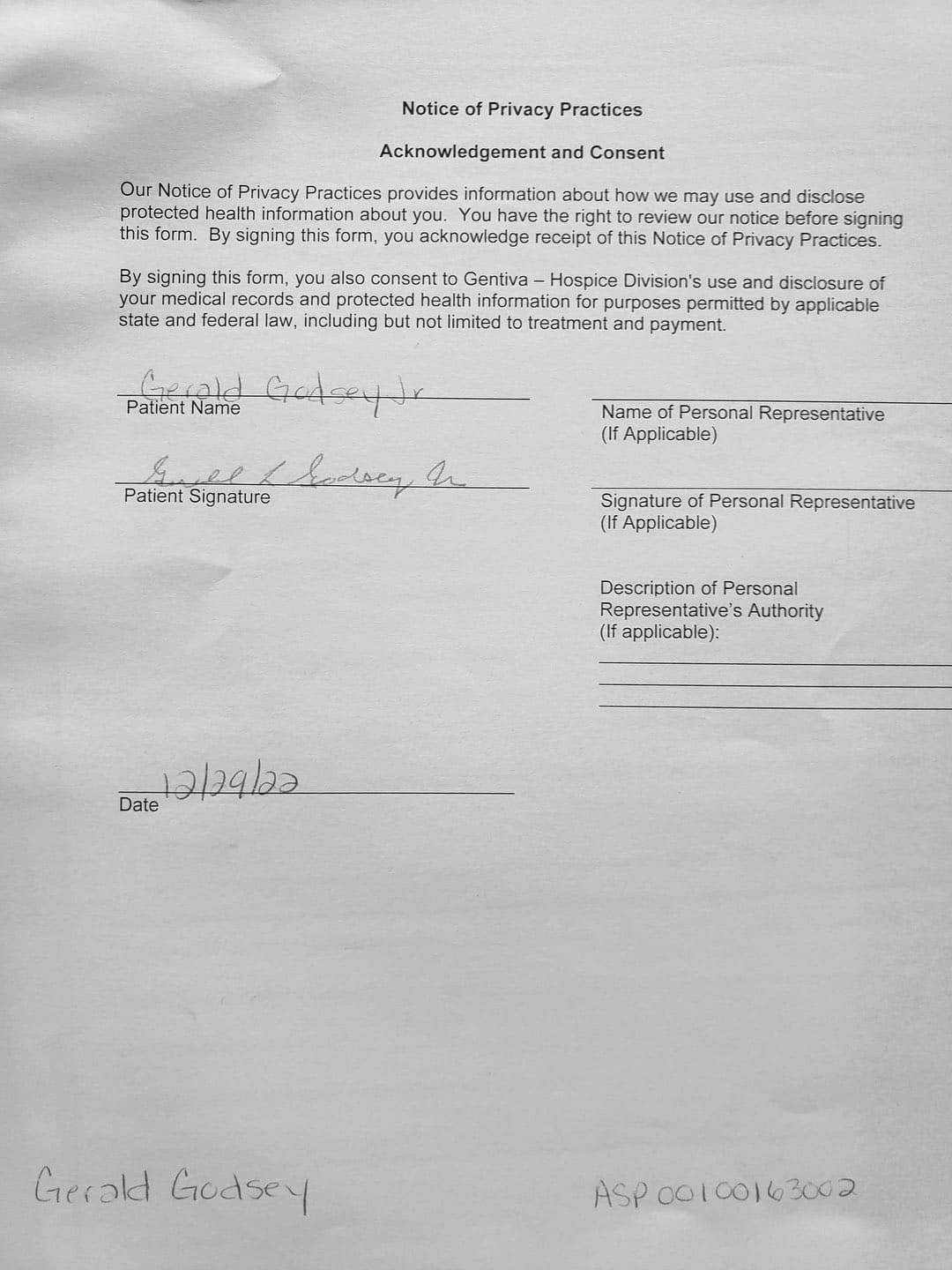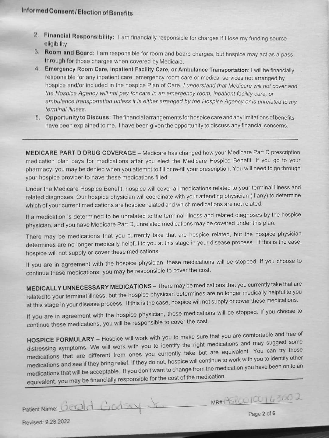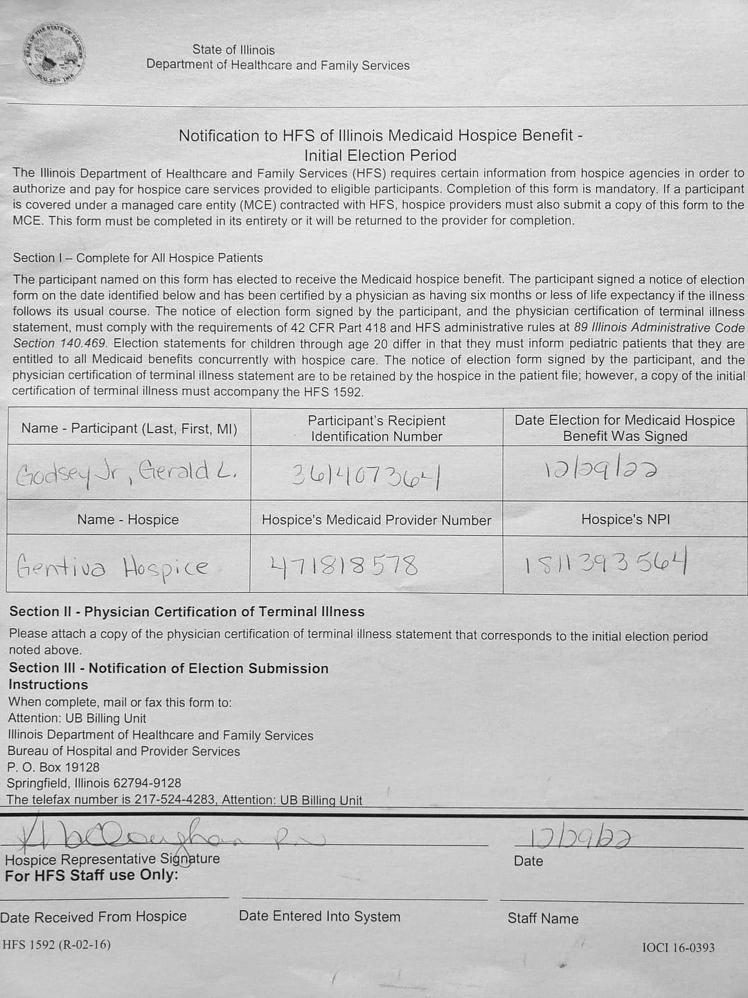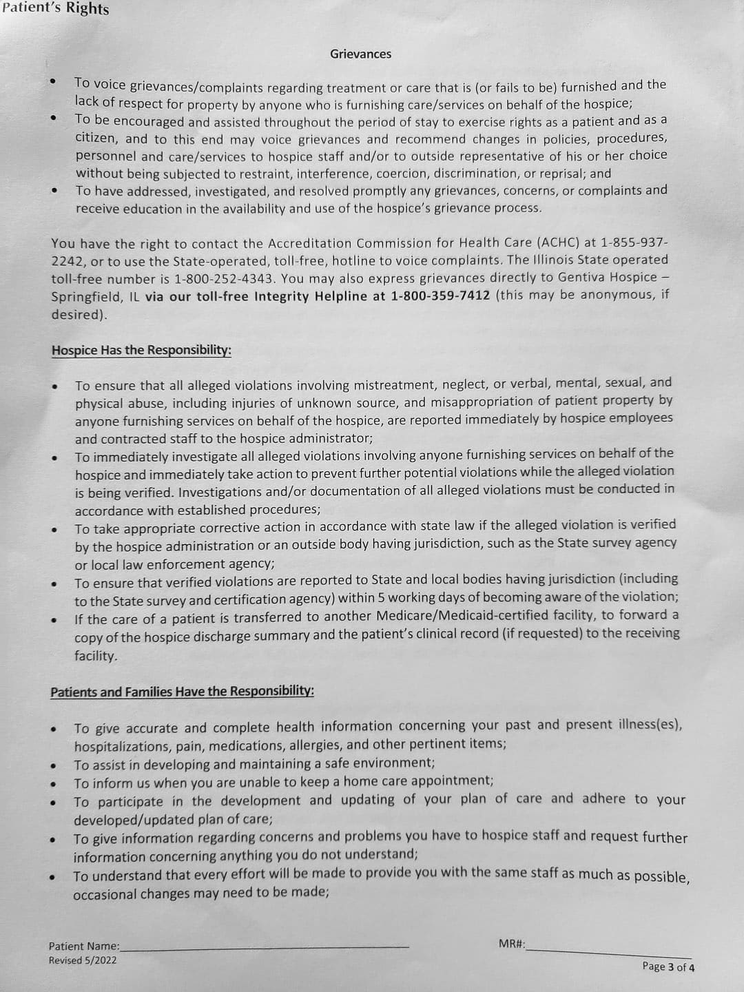 With her violence, destruction, and after hiding out in my father's bedroom for the first month, it came to a point where I thought about hospice. She came to me and told me my Oncologist recommended Gentiva. There was a bed, oxygen tank and other items almost immediately brought over, which I thought was strange. My nephew and my sister was there when the main hospice person with all the documents arrive.