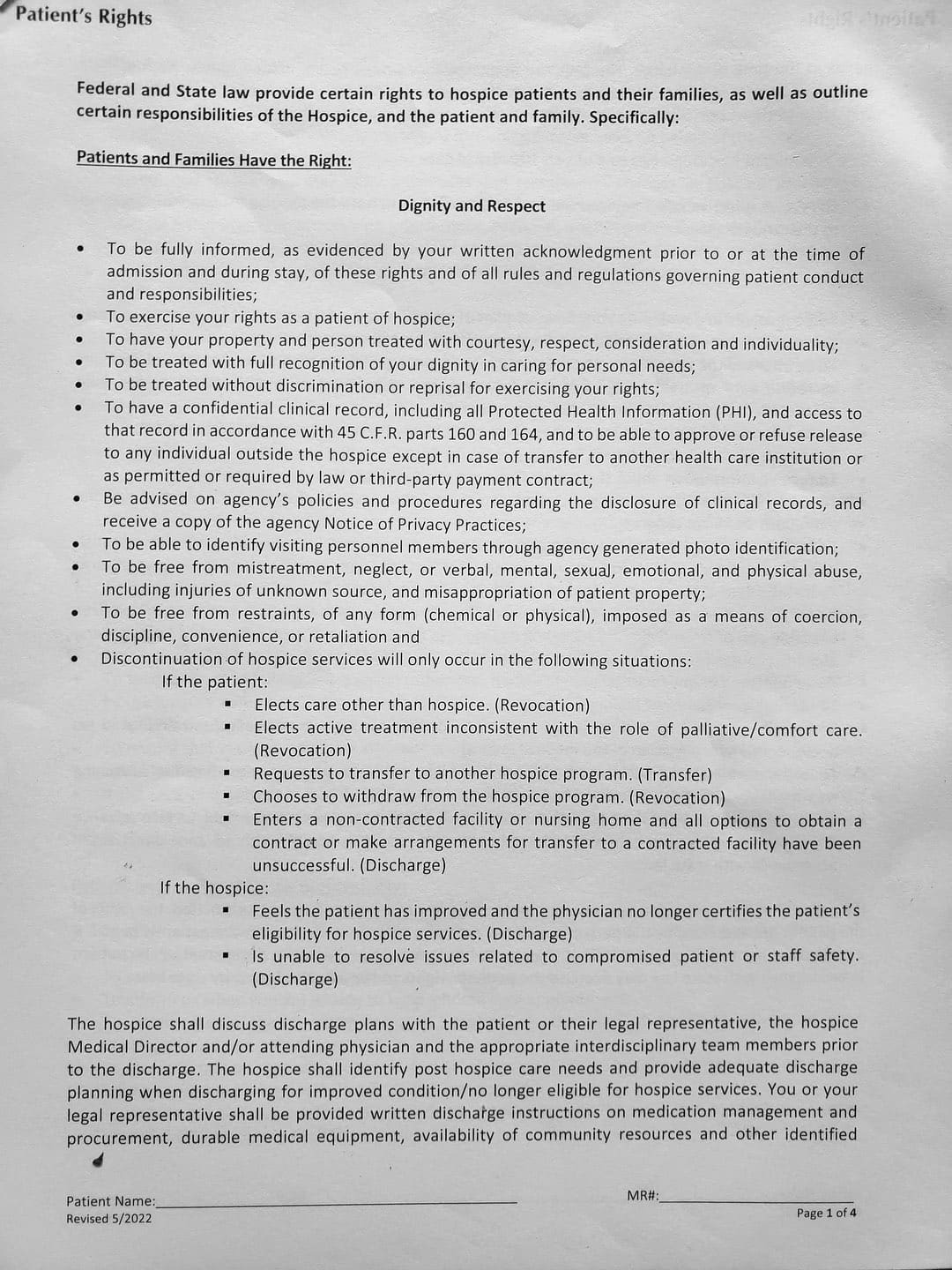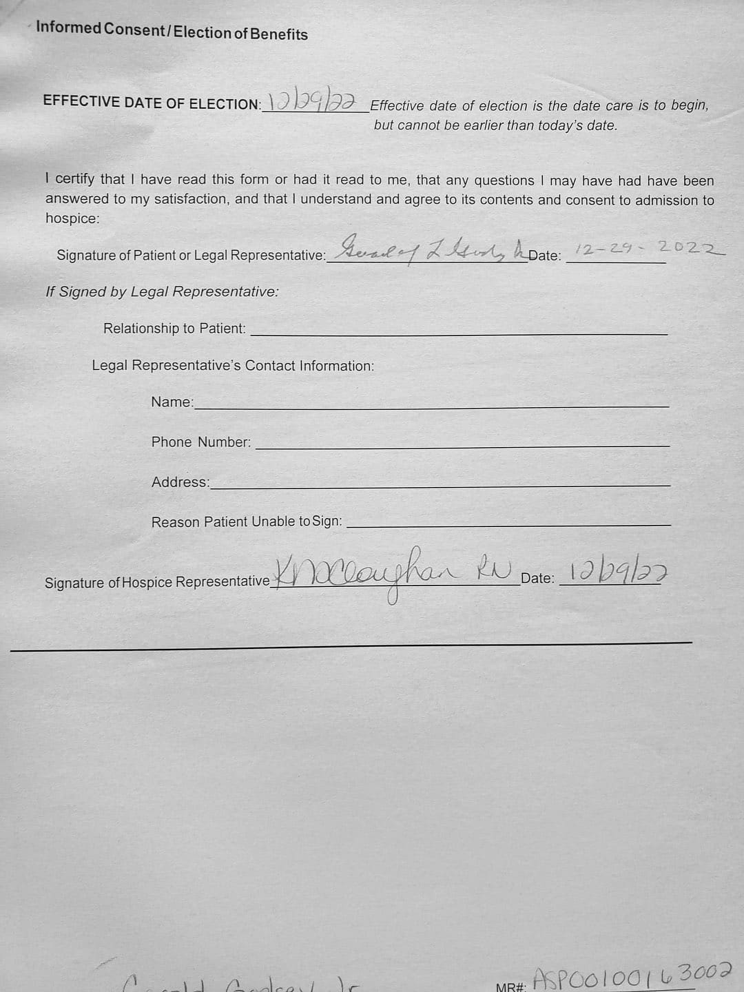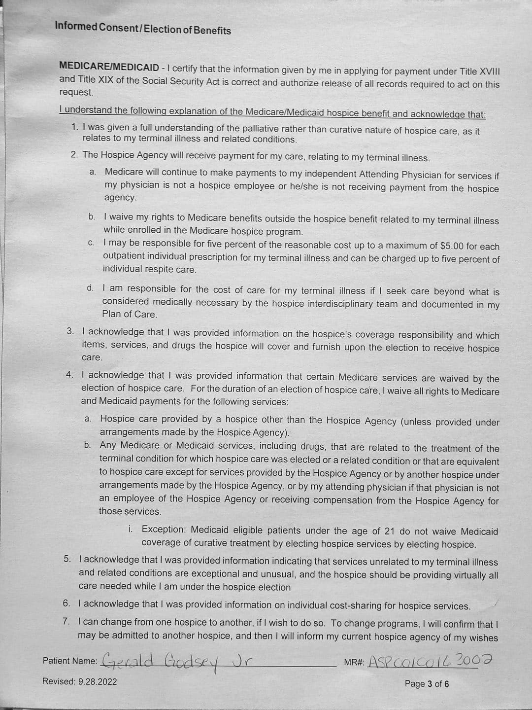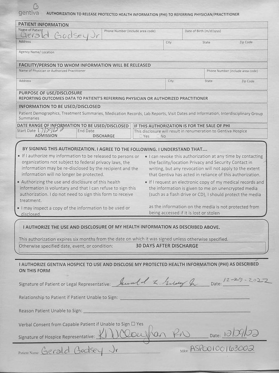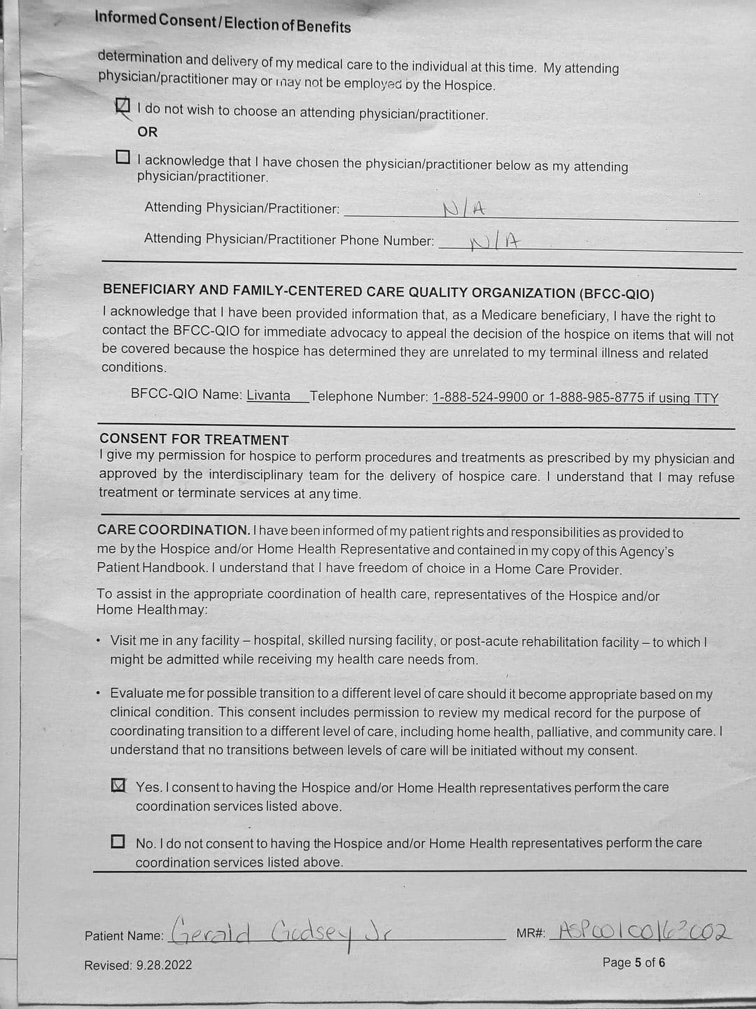 With her violence, destruction, and after hiding out in my father's bedroom for the first month, it came to a point where I thought about hospice. She came to me and told me my Oncologist recommended Gentiva. There was a bed, oxygen tank and other items almost immediately brought over, which I thought was strange. My nephew and my sister was there when the main hospice person with all the documents arrive.