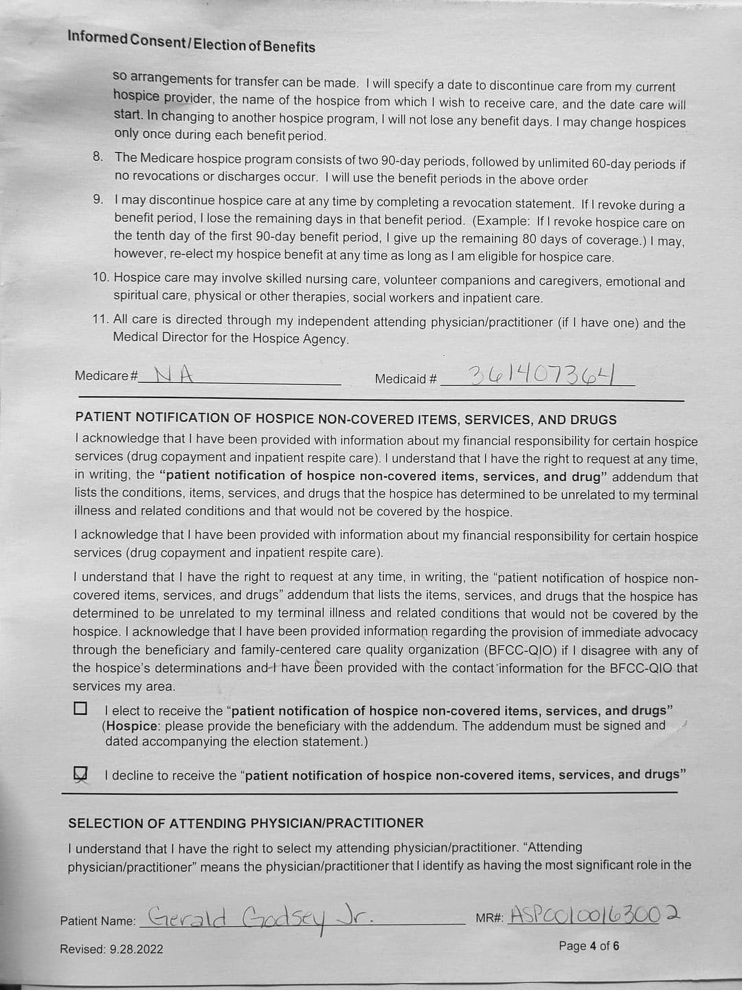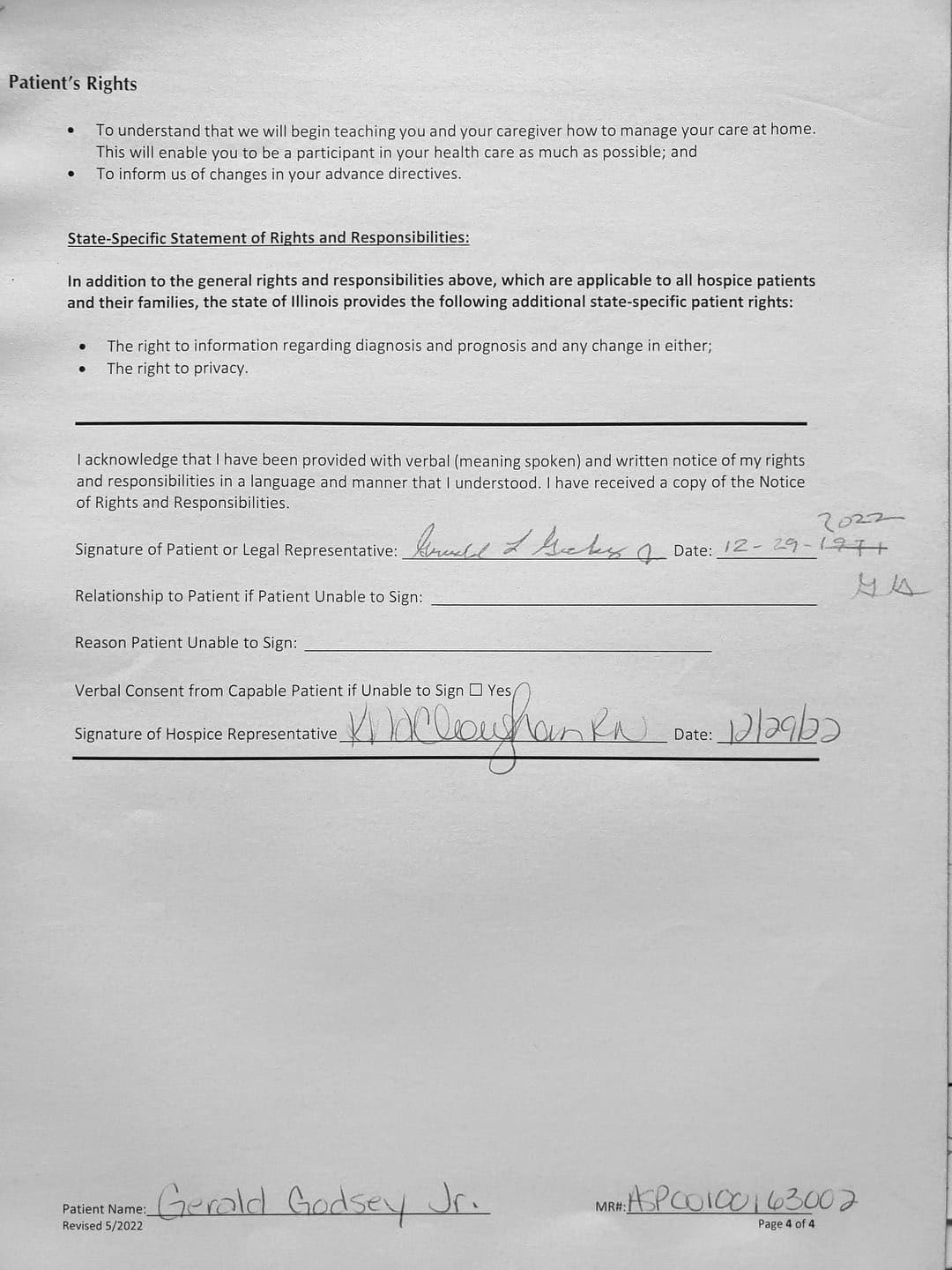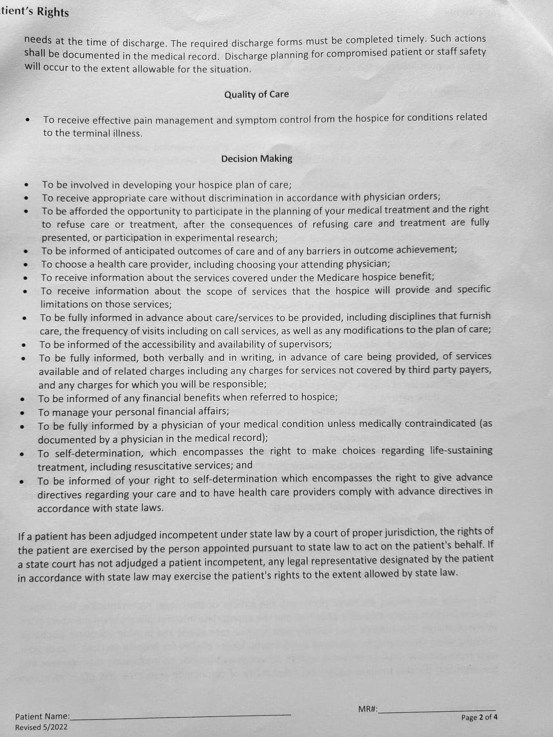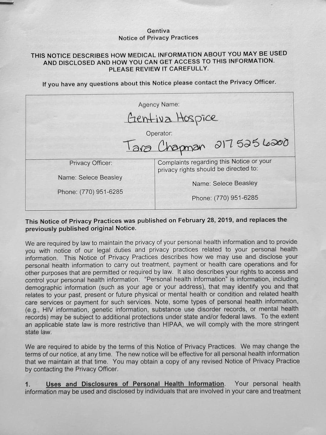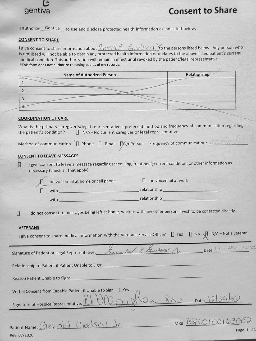 With her violence, destruction, and after hiding out in my father's bedroom for the first month, it came to a point where I thought about hospice. She came to me and told me my Oncologist recommended Gentiva. There was a bed, oxygen tank and other items almost immediately brought over, which I thought was strange. My nephew and my sister was there when the main hospice person with all the documents arrive.