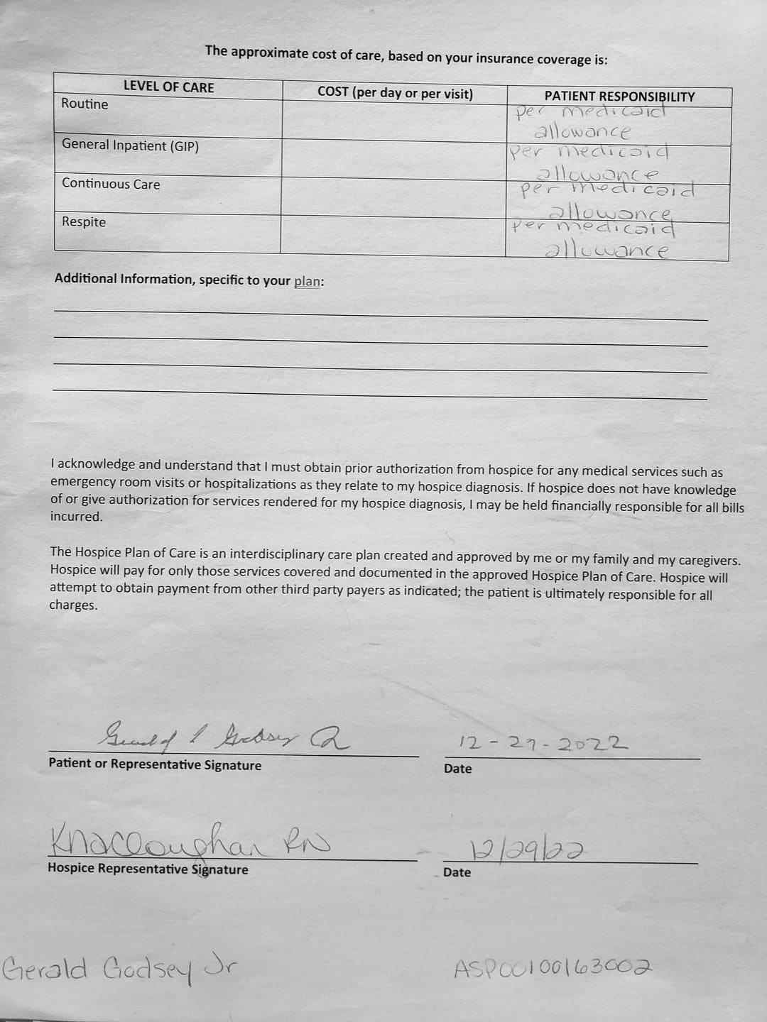 With her violence, destruction, and after hiding out in my father's bedroom for the first month, it came to a point where I thought about hospice. She came to me and told me my Oncologist recommended Gentiva. There was a bed, oxygen tank and other items almost immediately brought over, which I thought was strange. My nephew and my sister was there when the main hospice person with all the documents arrive.